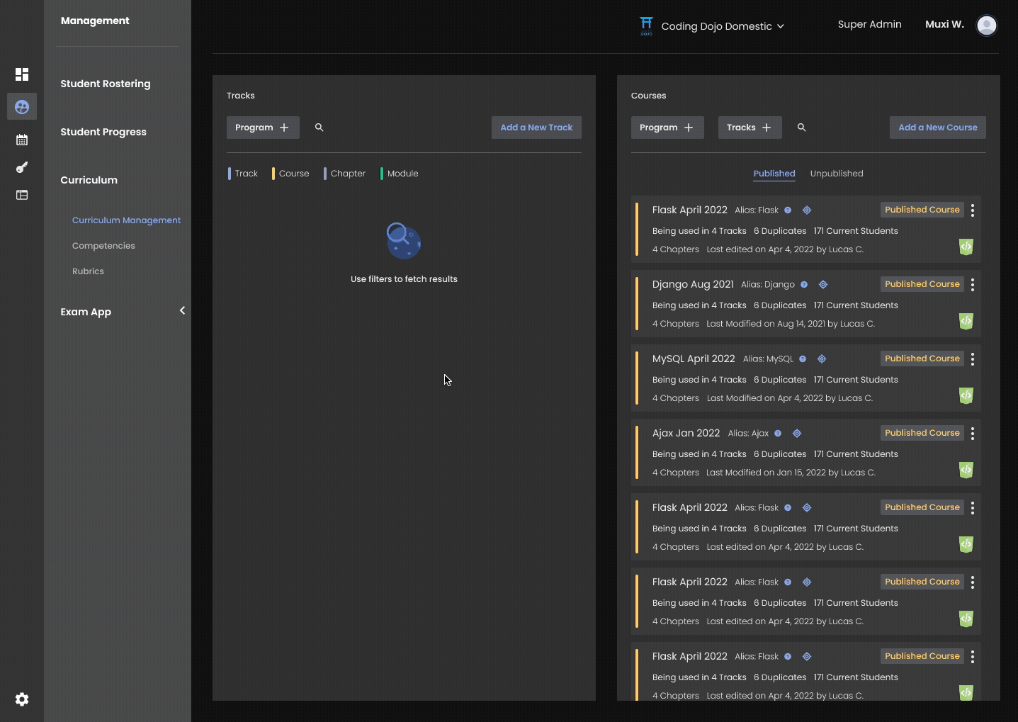 Coding Dojo LMS Curriculum Management System (2022, being developed)